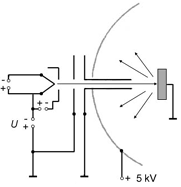 Eine Glühkathode in der Vakuumapparatur sendet Elektronen aus. Sie werden durch eine Spannung U (bis 100 V) beschleunigt und auf die Oberfläche der Kristallprobe (InP) fokussiert. Eine Hochspannung beschleunigt die vom Atomgitter der Kristalloberfläche gebeugten Elektronen in Richtung auf den Leuchtschirm. Die gesamte Anordnung ist in eine Kammer eingebaut, in der ein Ultrahoch-Vakuum herrscht. So wird die Oberfläche nicht durch Fremdatome einer Gasatmosphäre verunreinigt.