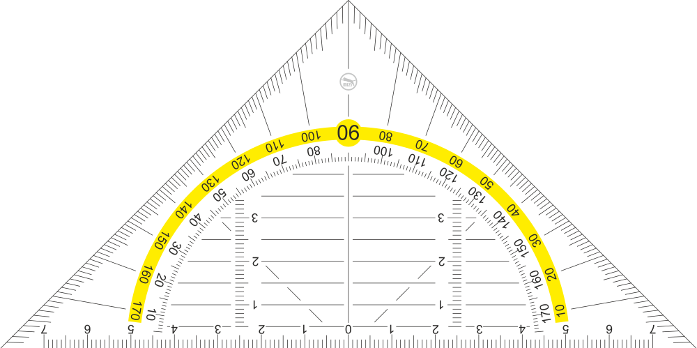 - Drehe und verschiebe das Geodreieck so, dass du Einfalls- und Reflexionswinkel messen kannst.
