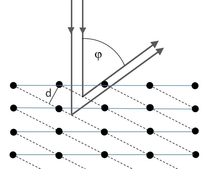 Denken Sie an eine sehr ähnliche Herleitung der Bragg'schen Reflexionsbedingung für der Reflexion von Röntgenstrahlen an Kristallen.