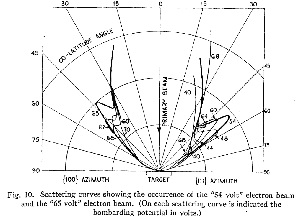In der Originalveröffentlichung der Arbeit von Davisson und Germer aus dem Jahr 1927 findet man folgendes Diagramm: