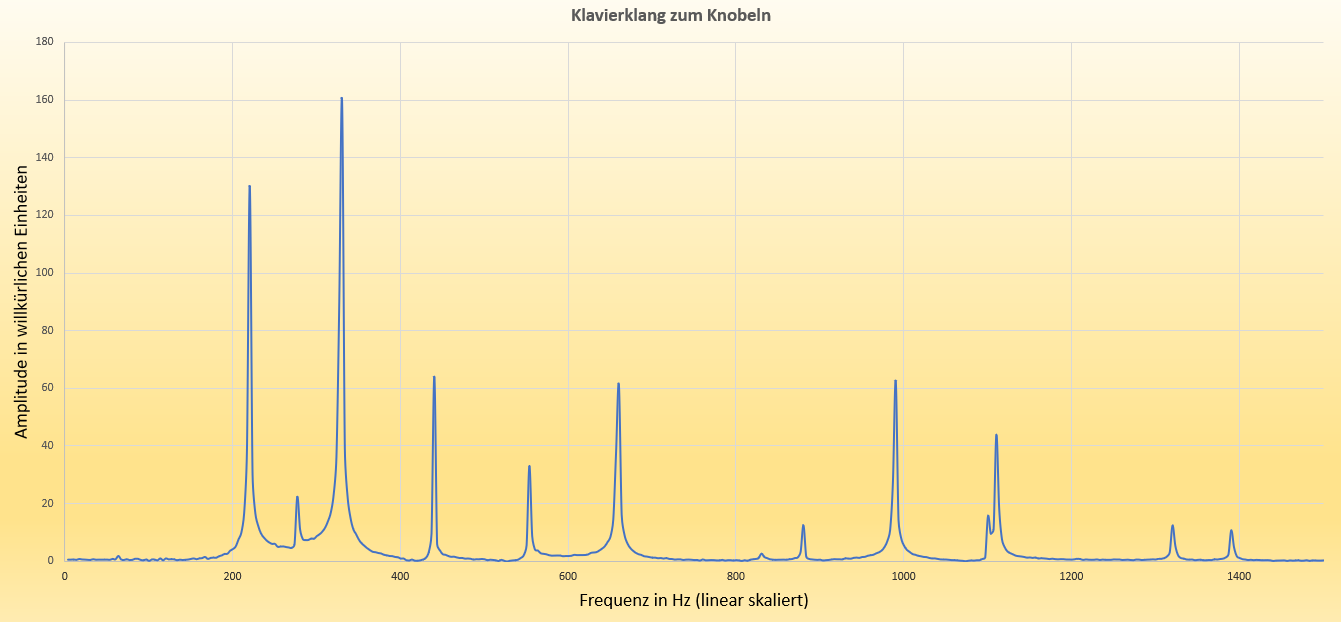 Verifizieren Sie die o. g. Aussage zu den Frequenzen der Obertöne im Vergleich zur Grundtonfrequenz auch am nachfolgenden Beispiel des Klangs einer Taste auf dem Klavier.