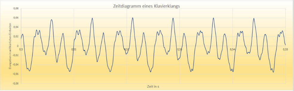 Die nachfolgende Abbildung zeigt einen Ausschnitt aus dem Zeitdiagramm der Aufnahme eines Klavierklangs über eine Zeitdauer von $Δt=0,05s$.